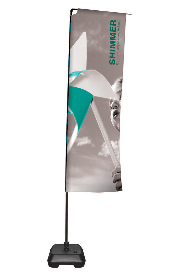 - Flaga lekka i przenośna, grafika mocowana za pomocą systemu