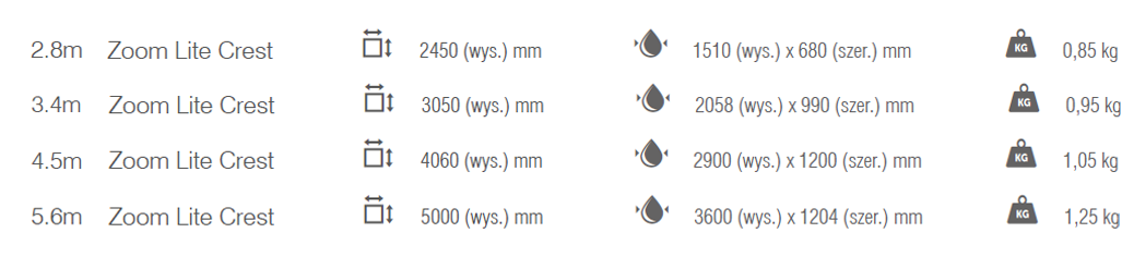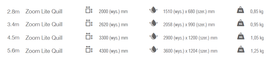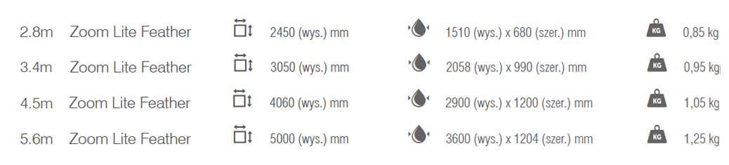 Dostępne rozmiary: 2.8m, 3.4m, 4.5m oraz 5.6m