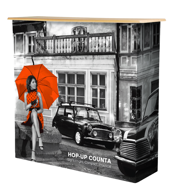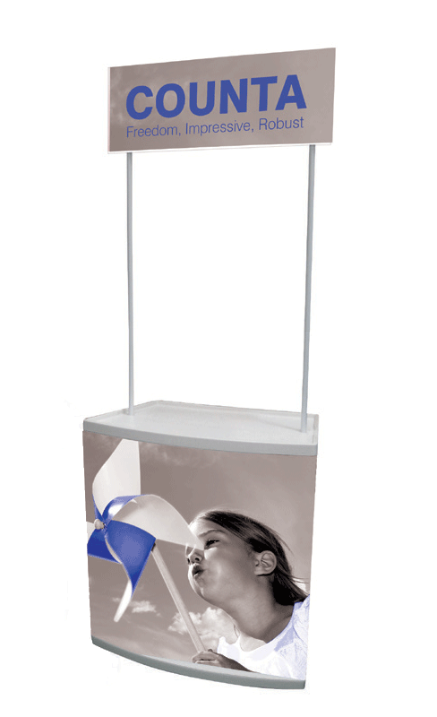 - Lekka, plastikowa, płasko pakowana lada promocyjna.