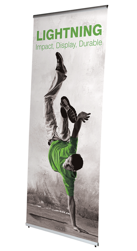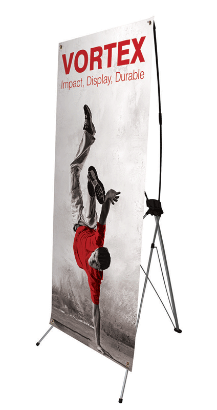 - Wolnostojący, napinany baner, prosty system oczkowy.